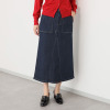 ワーク感と大人の品格を備えたデニムスカート。パッチポケットがカジュアルに差をつける一枚です。