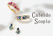 ブランド名「Caleido Scopio」(カレイドスコピオ)は、スペイン語で“万華鏡”を意味する。繊細なカットがほどこされた石を使用し、まるで万華鏡のように光彩豊かにキラキラと美しい輝きを放つジュエリーコレクションを展開。毎日をより華やかに彩ってくれる。