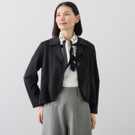 ふんわりなのにシャープな印象。構築的なシルエットが体型カバーと洗練された印象を両立します。