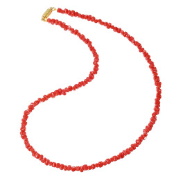 耳元にそっと佇む地中海サンゴ。“海の宝石”とも称される鮮烈な赤が大人の表情を演出します。