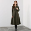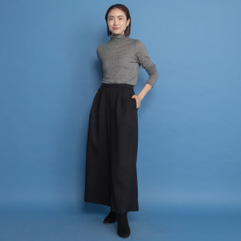 斜めタックが生み出す立体的なシルエットで、美しいIラインを演出。気になる下半身をエレガントにカバー。