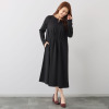 片側はシルク混素材、もう片側はジャージーを用いたデザイン。タックとドレープが体形をさりげなくカバー。