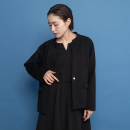 ヤエアジュテ きれいなシルエットで 初秋に映える ノーカラージャケット