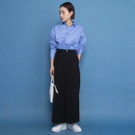 上質なシャリ感素材で季節を超えて活躍。程良い太さと裾の重みでスタイリッシュなシルエットを演出します。