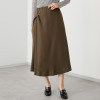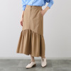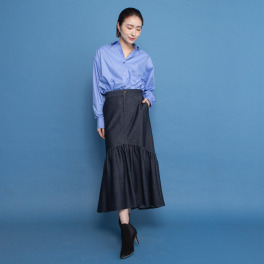 秋のエレガンスを大人の余裕で楽しむ。カーブを描く裾が動きに合わせて揺れ動き、優雅さを演出します。