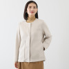 エレガントな雰囲気漂うノーカラーデザイン。暑い日でもきちんと感を演出できるリネン混のジャケット。