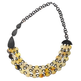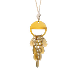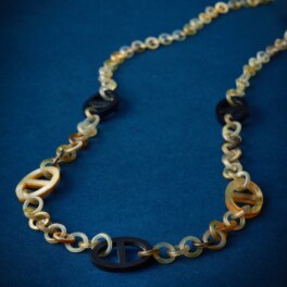 飴色水牛が織り成す立体的な表情。ロングネックレスとグラスホルダーの二役で優雅な存在感を発揮します。