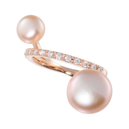 エクラトリエ サージカルステンレス 淡水パール&モアサナイト デリシャスピンクチェリー リング
