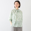 イフェメル/ ダブルフェーストーキョー 日本製 ボタニカル柄 フリルネック ボウタイブラウス