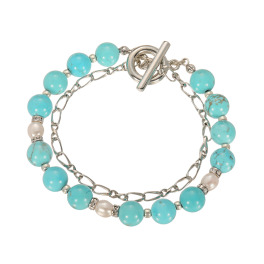 シマ・リリアーナ ジェムストーン& パールビジュウ&ビジュウ 2連ブレスレット