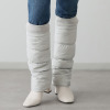 裏地に起毛素材を使用したダウンレッグウォーマーで足元暖か。はき口リブ&ゴムスピンドルで快適フィット。