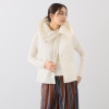 大きなフードで防寒対策も華やかに。ライトな中綿とリブ切り替えで、快適な着心地を実現。