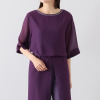 シフォンブラウスとジャージータンクトップを重ねたレイヤードデザイン。着るだけで映える一着!