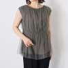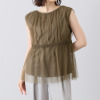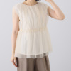 ボン・サンス 着映える1枚 ソフトチュールレイヤード 華やかリッチ ギャザーブラウス