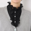 パール調ボタンを際立たせる優美なフリル。つけ襟で、眠っていた服も新たな魅力を放つかも。