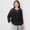 ニットとレースが織り成す上質な透け感。夏の日除け&冷房対策にも活躍する、涼しさと華やかさのある一枚。