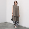 前後二枚重ねのレイヤードでこなれ感たっぷり。しなやかな素材感とストレッチ性でラフに着こなせます。