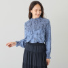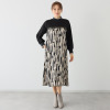 クラシカルな幾何柄プリントが大人のエレガンスを加味。落ち感のある生地ですっきりと着こなせます。