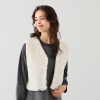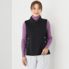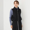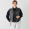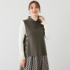 日常に洗練をもたらす、フード風の襟ぐりとサイドボタンの絶妙な配置。都会的センスが光る軽やかなベスト。