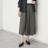 なめらかな落ち感と変形ドット柄で魅せる上品な印象。ウエストゴムでリラックス感のある着心地です。