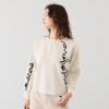 ソフトな肌触りと個性的な刺しゅうで魅了。配色テープラインがコーディネイトのアクセントに。