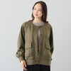 異素材切り替えがモード感を高める。柔らかな質感とパイピングのエッジで魅せる軽量フーディーブルゾン。