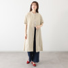 オリジナルのストライプ柄がもたらす大人カジュアル。前開き仕様で羽織りとしても活躍します。