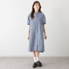 スタイル・ラヴィー 袖リブバイカラー& 切替アクセント オリジナルストライプ バンドカラーワンピース