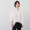 柔らかな天竺とシアー素材の絶妙な調和。ボリューミーな袖で、腕周りをすっきり見せる優秀デザイン。