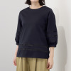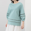 ふんわりスリーブが女性らしい印象。接触冷感機能とハシゴレースで暑い季節の装いに涼感を添えて。