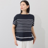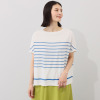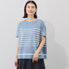 スピンブルー 接触冷感・吸水速乾 フレンチリネンブレンド ジャージー プリントボーダー プルオーバー
