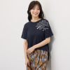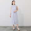 肌に触れた瞬間ひんやりと気持ち良いリネン混素材。モダンなパネルボーダーが夏の装いのアクセントに。