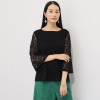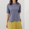 スピンブルー 世界が注目する ペーパーヤーン混 クルーネック 五分袖ニットプルオーバー