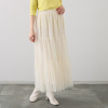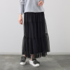 程良い透け感が大人の抜け感を演出するチュール。Tシャツ感覚で着られて、きちんと感のあるスタイルに。