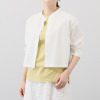 ペーパーヤーンをブレンドしたドライタッチな一着。リネンのような肌触りで、清涼感あふれる装いを演出。