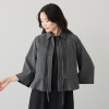ペーパーヤーンをブレンドしたドライタッチな一着。リネンのような肌触りで、清涼感あふれる装いを演出。