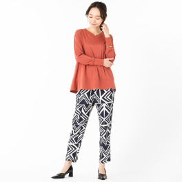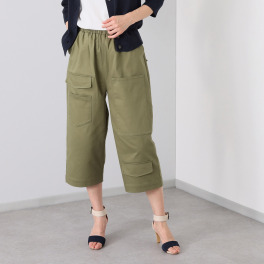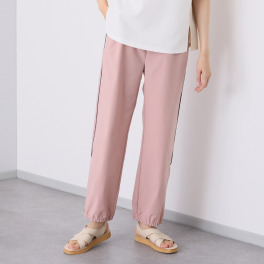 ストレッチ素材で動きやすく、快適なはき心地。センタープレスですらりと美脚効果も期待できます。