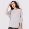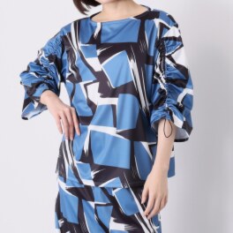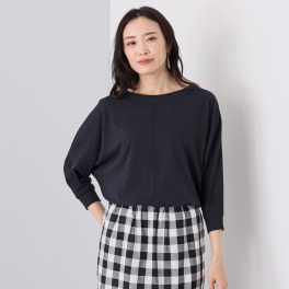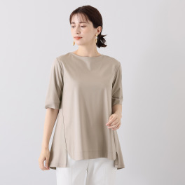 バーチ ドゥエ 接触冷感 ギザ超長綿ブレンド シルケットスムース 配色アクセント ボートネックチュニ…