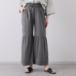 リネンライクな素材で暑い季節も◎ イージー仕様のワイドシルエットで動きやすさと上品さを両立。