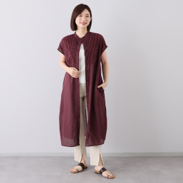 ソアージュ フレンチリネン100% リニフィッチオ社製糸使用 ボーダー透かし柄 トッパーカーディガン