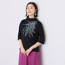 ヒロコ デシネール 綿100% なめらかスムース素材 取り外しできる肩パット付 ハイネックTシャツ