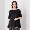 爽やかブロード素材と立体レースで魅せる夏の装い。フレアーデザインでお腹周りもおしゃれにカバー。