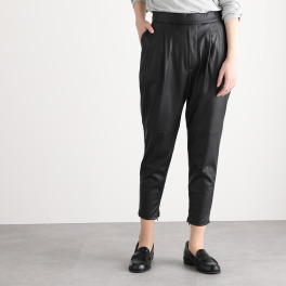 メリオン タック&ウエストゴムで すらっと快適な 美脚シルエット センタープレスの ストレートパンツ