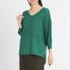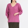 ざっくりとした片畦編みの、シンプルな一枚。ボリュームスリーブと前後差のあるシルエットがポイント。