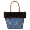 ダジュール デニム調 アルファベット刺しゅう フェイクファーアクセント トートバッグ