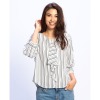 ナラカミーチェ ストライプ柄 フリルアクセント 七分袖ブラウス