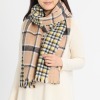2種のチェック柄素材を表裏で逆に切り替えたリバーシブル仕様。巻き方によって色の出方を変えられます。