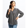 ナラカミーチェ ストライプ柄プリント Vネック 長袖ブラウス