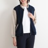 ギャザーを寄せ、配色で仕立てた襟がアクセント。後ろ身頃はヨーク部分で切り替えた、こだわりのデザイン。