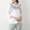 後ろ身頃の繊細な花刺しゅうがポイント。切り替えを入れた立体的なパターンですっきりとしたシルエットに。